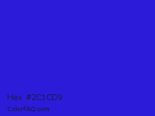 Hex #2c1cd9 Color is a normal indigo color and the nearest color is Interdimensional Blue #360ccc. Hex code #2c1cd9 and RGB value is rgb(44,28,217). In RGB color space, this color is composed of 17% red, 11% green, 85% blue, In CMYK color space, this color is composed of 80% cyan, 87% magenta, 0% yellow , 15% black , In HSL color space, this color has a hue angle of 245° , 77% saturation and 48% lightness.