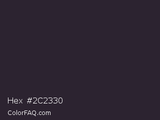 Hex #2c2330 Color is a very dark purple color and the nearest color is Bastille #292130. Hex code #2c2330 and RGB value is rgb(44,35,48). In RGB color space, this color is composed of 17% red, 14% green, 19% blue, In CMYK color space, this color is composed of 8% cyan, 27% magenta, 0% yellow , 81% black , In HSL color space, this color has a hue angle of 282° , 16% saturation and 16% lightness.