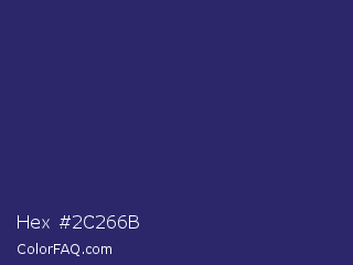 Hex #2c266b Color is a dark indigo color and the nearest color is Jacarta #3a2a6a. Hex code #2c266b and RGB value is rgb(44,38,107). In RGB color space, this color is composed of 17% red, 15% green, 42% blue, In CMYK color space, this color is composed of 59% cyan, 64% magenta, 0% yellow , 58% black , In HSL color space, this color has a hue angle of 245° , 48% saturation and 28% lightness.