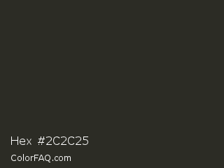 Hex #2c2c25 Color is a very dark yellow color and the nearest color is Heavy Metal #2b3228. Hex code #2c2c25 and RGB value is rgb(44,44,37). In RGB color space, this color is composed of 17% red, 17% green, 15% blue, In CMYK color space, this color is composed of 0% cyan, 0% magenta, 16% yellow , 83% black , In HSL color space, this color has a hue angle of 60° , 9% saturation and 16% lightness.