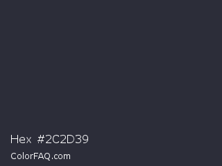 Hex #2c2d39 Color is a very dark blue color and the nearest color is Charade #292937. Hex code #2c2d39 and RGB value is rgb(44,45,57). In RGB color space, this color is composed of 17% red, 18% green, 22% blue, In CMYK color space, this color is composed of 23% cyan, 21% magenta, 0% yellow , 78% black , In HSL color space, this color has a hue angle of 235° , 13% saturation and 20% lightness.