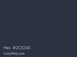 Hex #2c3240 Color is a very dark blue color and the nearest color is Gunmetal #2a3439. Hex code #2c3240 and RGB value is rgb(44,50,64). In RGB color space, this color is composed of 17% red, 20% green, 25% blue, In CMYK color space, this color is composed of 31% cyan, 22% magenta, 0% yellow , 75% black , In HSL color space, this color has a hue angle of 222° , 19% saturation and 21% lightness.