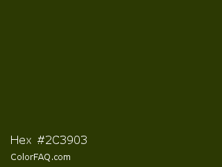 Hex #2c3903 Color is a very dark lime color and the nearest color is Turtle Green #2a380b. Hex code #2c3903 and RGB value is rgb(44,57,3). In RGB color space, this color is composed of 17% red, 22% green, 1% blue, In CMYK color space, this color is composed of 23% cyan, 0% magenta, 95% yellow , 78% black , In HSL color space, this color has a hue angle of 74° , 90% saturation and 12% lightness.