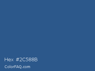 Hex #2c588b Color is a normal blue color and the nearest color is B Dazzled Blue #2e5894. Hex code #2c588b and RGB value is rgb(44,88,139). In RGB color space, this color is composed of 17% red, 35% green, 55% blue, In CMYK color space, this color is composed of 68% cyan, 37% magenta, 0% yellow , 45% black , In HSL color space, this color has a hue angle of 212° , 52% saturation and 36% lightness.