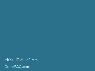 Hex #2c718b Color is a normal blue color and the nearest color is Calypso #31728d. Hex code #2c718b and RGB value is rgb(44,113,139). In RGB color space, this color is composed of 17% red, 44% green, 55% blue, In CMYK color space, this color is composed of 68% cyan, 19% magenta, 0% yellow , 45% black , In HSL color space, this color has a hue angle of 196° , 52% saturation and 36% lightness.