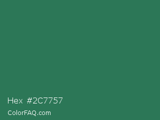 Hex #2c7757 Color is a normal green color and the nearest color is Amazon #3b7a57. Hex code #2c7757 and RGB value is rgb(44,119,87). In RGB color space, this color is composed of 17% red, 47% green, 34% blue, In CMYK color space, this color is composed of 63% cyan, 0% magenta, 27% yellow , 53% black , In HSL color space, this color has a hue angle of 154° , 46% saturation and 32% lightness.
