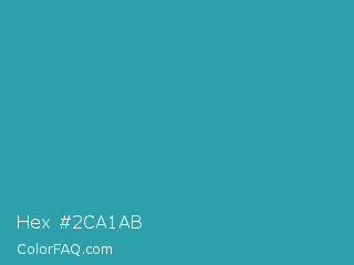 Hex #2ca1ab Color is a normal cyan color and the nearest color is Eastern Blue #1e9ab0. Hex code #2ca1ab and RGB value is rgb(44,161,171). In RGB color space, this color is composed of 17% red, 63% green, 67% blue, In CMYK color space, this color is composed of 74% cyan, 6% magenta, 0% yellow , 33% black , In HSL color space, this color has a hue angle of 185° , 59% saturation and 42% lightness.