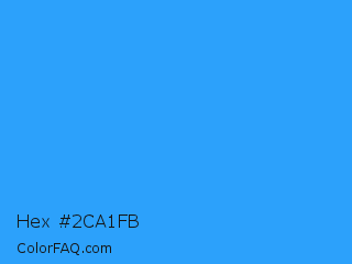 Hex #2ca1fb Color is a normal blue color and the nearest color is Brilliant Azure #3399ff. Hex code #2ca1fb and RGB value is rgb(44,161,251). In RGB color space, this color is composed of 17% red, 63% green, 98% blue, In CMYK color space, this color is composed of 82% cyan, 36% magenta, 0% yellow , 2% black , In HSL color space, this color has a hue angle of 206° , 96% saturation and 58% lightness.