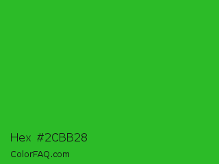 Hex #2cbb28 Color is a normal green color and the nearest color is Wageningen Green #34b233. Hex code #2cbb28 and RGB value is rgb(44,187,40). In RGB color space, this color is composed of 17% red, 73% green, 16% blue, In CMYK color space, this color is composed of 76% cyan, 0% magenta, 79% yellow , 27% black , In HSL color space, this color has a hue angle of 118° , 65% saturation and 45% lightness.