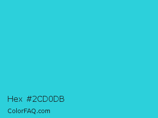 Hex #2cd0db Color is a normal cyan color and the nearest color is Scooter #2ebfd4. Hex code #2cd0db and RGB value is rgb(44,208,219). In RGB color space, this color is composed of 17% red, 82% green, 86% blue, In CMYK color space, this color is composed of 80% cyan, 5% magenta, 0% yellow , 14% black , In HSL color space, this color has a hue angle of 184° , 71% saturation and 52% lightness.