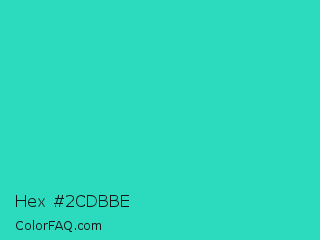 Hex #2cdbbe Color is a normal cyan color and the nearest color is Turquoise PWG #30d5c8. Hex code #2cdbbe and RGB value is rgb(44,219,190). In RGB color space, this color is composed of 17% red, 86% green, 75% blue, In CMYK color space, this color is composed of 80% cyan, 0% magenta, 13% yellow , 14% black , In HSL color space, this color has a hue angle of 170° , 71% saturation and 52% lightness.
