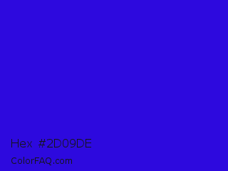 Hex #2d09de Color is a normal indigo color and the nearest color is Interdimensional Blue #360ccc. Hex code #2d09de and RGB value is rgb(45,9,222). In RGB color space, this color is composed of 18% red, 4% green, 87% blue, In CMYK color space, this color is composed of 80% cyan, 96% magenta, 0% yellow , 13% black , In HSL color space, this color has a hue angle of 250° , 92% saturation and 45% lightness.