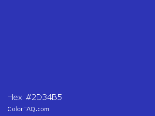 Hex #2d34b5 Color is a normal blue color and the nearest color is Governor Bay #2f3cb3. Hex code #2d34b5 and RGB value is rgb(45,52,181). In RGB color space, this color is composed of 18% red, 20% green, 71% blue, In CMYK color space, this color is composed of 75% cyan, 71% magenta, 0% yellow , 29% black , In HSL color space, this color has a hue angle of 237° , 60% saturation and 44% lightness.