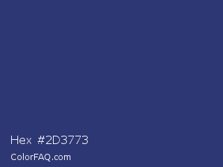 Hex #2d3773 Color is a normal blue color and the nearest color is Astronaut #283a77. Hex code #2d3773 and RGB value is rgb(45,55,115). In RGB color space, this color is composed of 18% red, 22% green, 45% blue, In CMYK color space, this color is composed of 61% cyan, 52% magenta, 0% yellow , 55% black , In HSL color space, this color has a hue angle of 231° , 44% saturation and 31% lightness.