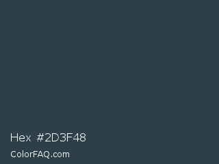 Hex #2d3f48 Color is a dark blue color and the nearest color is Japanese Indigo #264348. Hex code #2d3f48 and RGB value is rgb(45,63,72). In RGB color space, this color is composed of 18% red, 25% green, 28% blue, In CMYK color space, this color is composed of 38% cyan, 13% magenta, 0% yellow , 72% black , In HSL color space, this color has a hue angle of 200° , 23% saturation and 23% lightness.