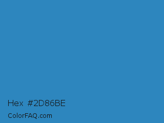 Hex #2d86be Color is a normal blue color and the nearest color is Boston Blue #3b91b4. Hex code #2d86be and RGB value is rgb(45,134,190). In RGB color space, this color is composed of 18% red, 53% green, 75% blue, In CMYK color space, this color is composed of 76% cyan, 29% magenta, 0% yellow , 25% black , In HSL color space, this color has a hue angle of 203° , 62% saturation and 46% lightness.