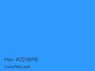 Hex #2d9bfb Color is a normal blue color and the nearest color is Brilliant Azure #3399ff. Hex code #2d9bfb and RGB value is rgb(45,155,251). In RGB color space, this color is composed of 18% red, 61% green, 98% blue, In CMYK color space, this color is composed of 82% cyan, 38% magenta, 0% yellow , 2% black , In HSL color space, this color has a hue angle of 208° , 96% saturation and 58% lightness.