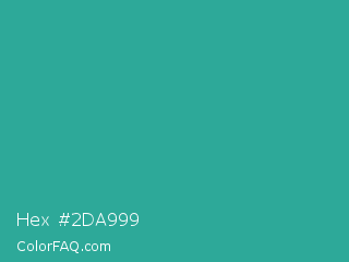Hex #2da999 Color is a normal cyan color and the nearest color is Keppel #3ab09e. Hex code #2da999 and RGB value is rgb(45,169,153). In RGB color space, this color is composed of 18% red, 66% green, 60% blue, In CMYK color space, this color is composed of 73% cyan, 0% magenta, 9% yellow , 34% black , In HSL color space, this color has a hue angle of 172° , 58% saturation and 42% lightness.
