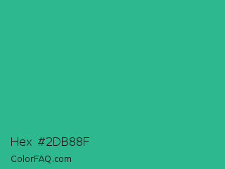 Hex #2db88f Color is a normal green color and the nearest color is Mountain Meadow #30ba8f. Hex code #2db88f and RGB value is rgb(45,184,143). In RGB color space, this color is composed of 18% red, 72% green, 56% blue, In CMYK color space, this color is composed of 76% cyan, 0% magenta, 22% yellow , 28% black , In HSL color space, this color has a hue angle of 162° , 61% saturation and 45% lightness.