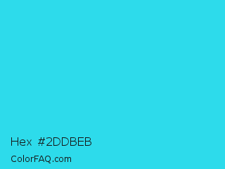 Hex #2ddbeb Color is a normal cyan color and the nearest color is Turquoise #40e0d0. Hex code #2ddbeb and RGB value is rgb(45,219,235). In RGB color space, this color is composed of 18% red, 86% green, 92% blue, In CMYK color space, this color is composed of 81% cyan, 7% magenta, 0% yellow , 8% black , In HSL color space, this color has a hue angle of 185° , 83% saturation and 55% lightness.