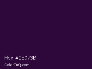 Hex #2e073b Color is a very dark purple color and the nearest color is Mardi Gras #350036. Hex code #2e073b and RGB value is rgb(46,7,59). In RGB color space, this color is composed of 18% red, 3% green, 23% blue, In CMYK color space, this color is composed of 22% cyan, 88% magenta, 0% yellow , 77% black , In HSL color space, this color has a hue angle of 285° , 79% saturation and 13% lightness.