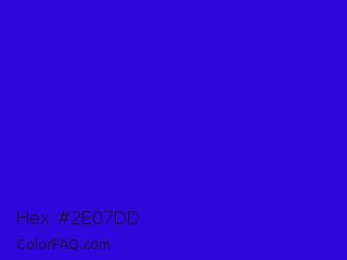 Hex #2e07dd Color is a normal indigo color and the nearest color is Interdimensional Blue #360ccc. Hex code #2e07dd and RGB value is rgb(46,7,221). In RGB color space, this color is composed of 18% red, 3% green, 87% blue, In CMYK color space, this color is composed of 79% cyan, 97% magenta, 0% yellow , 13% black , In HSL color space, this color has a hue angle of 251° , 94% saturation and 45% lightness.