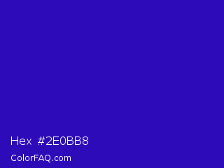 Hex #2e0bb8 Color is a normal indigo color and the nearest color is Interdimensional Blue #360ccc. Hex code #2e0bb8 and RGB value is rgb(46,11,184). In RGB color space, this color is composed of 18% red, 4% green, 72% blue, In CMYK color space, this color is composed of 75% cyan, 94% magenta, 0% yellow , 28% black , In HSL color space, this color has a hue angle of 252° , 89% saturation and 38% lightness.
