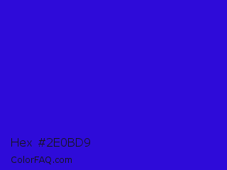 Hex #2e0bd9 Color is a normal indigo color and the nearest color is Interdimensional Blue #360ccc. Hex code #2e0bd9 and RGB value is rgb(46,11,217). In RGB color space, this color is composed of 18% red, 4% green, 85% blue, In CMYK color space, this color is composed of 79% cyan, 95% magenta, 0% yellow , 15% black , In HSL color space, this color has a hue angle of 250° , 90% saturation and 45% lightness.