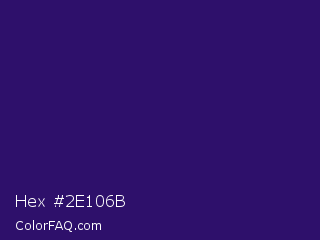 Hex #2e106b Color is a dark indigo color and the nearest color is Paris M #26056a. Hex code #2e106b and RGB value is rgb(46,16,107). In RGB color space, this color is composed of 18% red, 6% green, 42% blue, In CMYK color space, this color is composed of 57% cyan, 85% magenta, 0% yellow , 58% black , In HSL color space, this color has a hue angle of 260° , 74% saturation and 24% lightness.