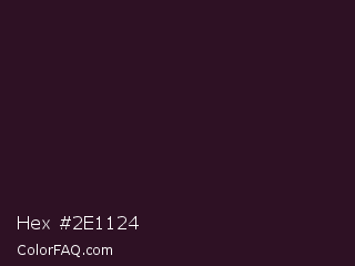 Hex #2e1124 Color is a very dark magenta color and the nearest color is Melanzane #300529. Hex code #2e1124 and RGB value is rgb(46,17,36). In RGB color space, this color is composed of 18% red, 7% green, 14% blue, In CMYK color space, this color is composed of 0% cyan, 63% magenta, 22% yellow , 82% black , In HSL color space, this color has a hue angle of 321° , 46% saturation and 12% lightness.