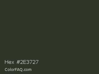 Hex #2e3727 Color is a very dark green color and the nearest color is Heavy Metal #2b3228. Hex code #2e3727 and RGB value is rgb(46,55,39). In RGB color space, this color is composed of 18% red, 22% green, 15% blue, In CMYK color space, this color is composed of 16% cyan, 0% magenta, 29% yellow , 78% black , In HSL color space, this color has a hue angle of 94° , 17% saturation and 18% lightness.