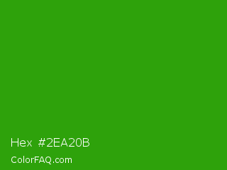 Hex #2ea20b Color is a normal green color and the nearest color is Slimy Green #299617. Hex code #2ea20b and RGB value is rgb(46,162,11). In RGB color space, this color is composed of 18% red, 64% green, 4% blue, In CMYK color space, this color is composed of 72% cyan, 0% magenta, 93% yellow , 36% black , In HSL color space, this color has a hue angle of 106° , 87% saturation and 34% lightness.