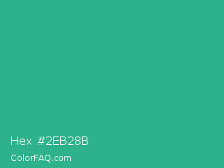 Hex #2eb28b Color is a normal green color and the nearest color is Mountain Meadow #30ba8f. Hex code #2eb28b and RGB value is rgb(46,178,139). In RGB color space, this color is composed of 18% red, 70% green, 55% blue, In CMYK color space, this color is composed of 74% cyan, 0% magenta, 22% yellow , 30% black , In HSL color space, this color has a hue angle of 162° , 59% saturation and 44% lightness.