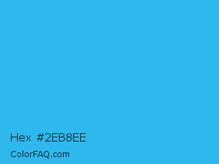 Hex #2eb8ee Color is a normal blue color and the nearest color is Picton Blue #45b1e8. Hex code #2eb8ee and RGB value is rgb(46,184,238). In RGB color space, this color is composed of 18% red, 72% green, 93% blue, In CMYK color space, this color is composed of 81% cyan, 23% magenta, 0% yellow , 7% black , In HSL color space, this color has a hue angle of 197° , 85% saturation and 56% lightness.