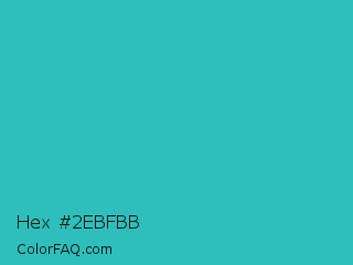 Hex #2ebfbb Color is a normal cyan color and the nearest color is Maximum Blue Green #30bfbf. Hex code #2ebfbb and RGB value is rgb(46,191,187). In RGB color space, this color is composed of 18% red, 75% green, 73% blue, In CMYK color space, this color is composed of 76% cyan, 0% magenta, 2% yellow , 25% black , In HSL color space, this color has a hue angle of 178° , 61% saturation and 46% lightness.