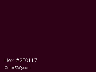 Hex #2f0117 Color is a almost black rose color and the nearest color is Toledo #3a0020. Hex code #2f0117 and RGB value is rgb(47,1,23). In RGB color space, this color is composed of 18% red, 0% green, 9% blue, In CMYK color space, this color is composed of 0% cyan, 98% magenta, 51% yellow , 82% black , In HSL color space, this color has a hue angle of 331° , 96% saturation and 9% lightness.