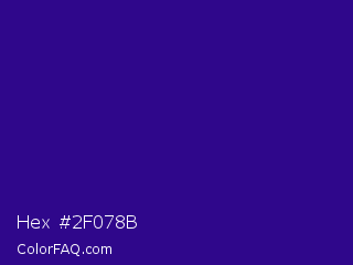 Hex #2f078b Color is a dark indigo color and the nearest color is Blue Gem #2c0e8c. Hex code #2f078b and RGB value is rgb(47,7,139). In RGB color space, this color is composed of 18% red, 3% green, 55% blue, In CMYK color space, this color is composed of 66% cyan, 95% magenta, 0% yellow , 45% black , In HSL color space, this color has a hue angle of 258° , 90% saturation and 29% lightness.