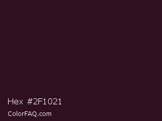 Hex #2f1021 Color is a very dark magenta color and the nearest color is Melanzane #300529. Hex code #2f1021 and RGB value is rgb(47,16,33). In RGB color space, this color is composed of 18% red, 6% green, 13% blue, In CMYK color space, this color is composed of 0% cyan, 66% magenta, 30% yellow , 82% black , In HSL color space, this color has a hue angle of 327° , 49% saturation and 12% lightness.
