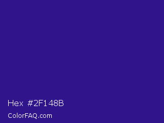 Hex #2f148b Color is a normal indigo color and the nearest color is Blue Gem #2c0e8c. Hex code #2f148b and RGB value is rgb(47,20,139). In RGB color space, this color is composed of 18% red, 8% green, 55% blue, In CMYK color space, this color is composed of 66% cyan, 86% magenta, 0% yellow , 45% black , In HSL color space, this color has a hue angle of 254° , 75% saturation and 31% lightness.