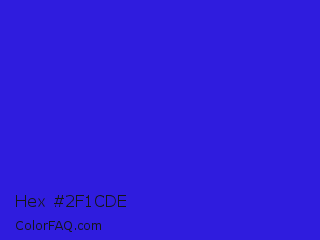 Hex #2f1cde Color is a normal indigo color and the nearest color is Interdimensional Blue #360ccc. Hex code #2f1cde and RGB value is rgb(47,28,222). In RGB color space, this color is composed of 18% red, 11% green, 87% blue, In CMYK color space, this color is composed of 79% cyan, 87% magenta, 0% yellow , 13% black , In HSL color space, this color has a hue angle of 246° , 78% saturation and 49% lightness.