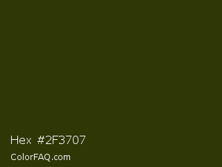 Hex #2f3707 Color is a very dark yellow color and the nearest color is Turtle Green #2a380b. Hex code #2f3707 and RGB value is rgb(47,55,7). In RGB color space, this color is composed of 18% red, 22% green, 3% blue, In CMYK color space, this color is composed of 15% cyan, 0% magenta, 87% yellow , 78% black , In HSL color space, this color has a hue angle of 70° , 77% saturation and 12% lightness.