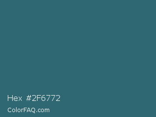 Hex #2f6772 Color is a normal cyan color and the nearest color is Casal #2f6168. Hex code #2f6772 and RGB value is rgb(47,103,114). In RGB color space, this color is composed of 18% red, 40% green, 45% blue, In CMYK color space, this color is composed of 59% cyan, 10% magenta, 0% yellow , 55% black , In HSL color space, this color has a hue angle of 190° , 42% saturation and 32% lightness.
