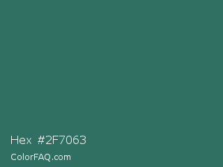 Hex #2f7063 Color is a normal cyan color and the nearest color is Casal #2f6168. Hex code #2f7063 and RGB value is rgb(47,112,99). In RGB color space, this color is composed of 18% red, 44% green, 39% blue, In CMYK color space, this color is composed of 58% cyan, 0% magenta, 12% yellow , 56% black , In HSL color space, this color has a hue angle of 168° , 41% saturation and 31% lightness.