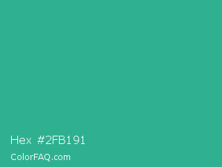 Hex #2fb191 Color is a normal cyan color and the nearest color is Mountain Meadow #30ba8f. Hex code #2fb191 and RGB value is rgb(47,177,145). In RGB color space, this color is composed of 18% red, 69% green, 57% blue, In CMYK color space, this color is composed of 73% cyan, 0% magenta, 18% yellow , 31% black , In HSL color space, this color has a hue angle of 165° , 58% saturation and 44% lightness.