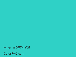 Hex #2fd1c6 Color is a normal cyan color and the nearest color is Turquoise PWG #30d5c8. Hex code #2fd1c6 and RGB value is rgb(47,209,198). In RGB color space, this color is composed of 18% red, 82% green, 78% blue, In CMYK color space, this color is composed of 78% cyan, 0% magenta, 5% yellow , 18% black , In HSL color space, this color has a hue angle of 176° , 64% saturation and 50% lightness.