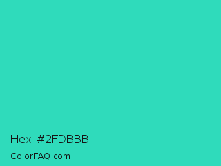 Hex #2fdbbb Color is a normal cyan color and the nearest color is Turquoise PWG #30d5c8. Hex code #2fdbbb and RGB value is rgb(47,219,187). In RGB color space, this color is composed of 18% red, 86% green, 73% blue, In CMYK color space, this color is composed of 79% cyan, 0% magenta, 15% yellow , 14% black , In HSL color space, this color has a hue angle of 169° , 70% saturation and 52% lightness.