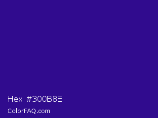 Hex #300b8e Color is a dark indigo color and the nearest color is Blue Gem #2c0e8c. Hex code #300b8e and RGB value is rgb(48,11,142). In RGB color space, this color is composed of 19% red, 4% green, 56% blue, In CMYK color space, this color is composed of 66% cyan, 92% magenta, 0% yellow , 44% black , In HSL color space, this color has a hue angle of 257° , 86% saturation and 30% lightness.