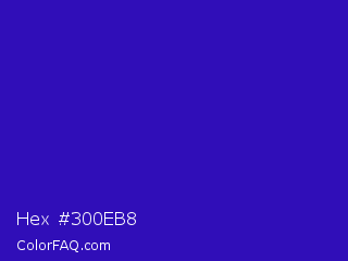 Hex #300eb8 Color is a normal indigo color and the nearest color is Interdimensional Blue #360ccc. Hex code #300eb8 and RGB value is rgb(48,14,184). In RGB color space, this color is composed of 19% red, 5% green, 72% blue, In CMYK color space, this color is composed of 74% cyan, 92% magenta, 0% yellow , 28% black , In HSL color space, this color has a hue angle of 252° , 86% saturation and 39% lightness.