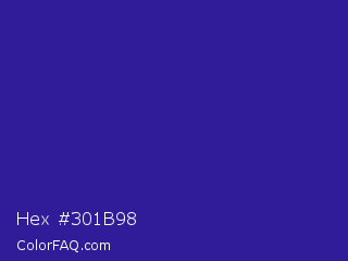 Hex #301b98 Color is a normal indigo color and the nearest color is Blue Gem #2c0e8c. Hex code #301b98 and RGB value is rgb(48,27,152). In RGB color space, this color is composed of 19% red, 11% green, 60% blue, In CMYK color space, this color is composed of 68% cyan, 82% magenta, 0% yellow , 40% black , In HSL color space, this color has a hue angle of 250° , 70% saturation and 35% lightness.