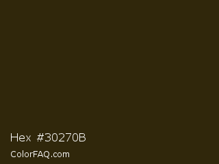 Hex #30270b Color is a very dark orange color and the nearest color is Onion #2f270e. Hex code #30270b and RGB value is rgb(48,39,11). In RGB color space, this color is composed of 19% red, 15% green, 4% blue, In CMYK color space, this color is composed of 0% cyan, 19% magenta, 77% yellow , 81% black , In HSL color space, this color has a hue angle of 45° , 63% saturation and 12% lightness.